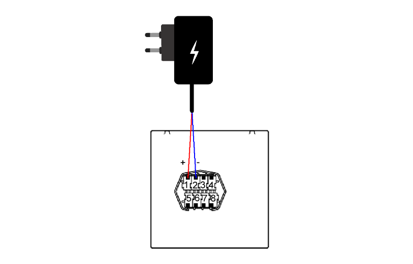 Achten Sie bei der Spannungsversorgung auf die Polung (12 V DC).